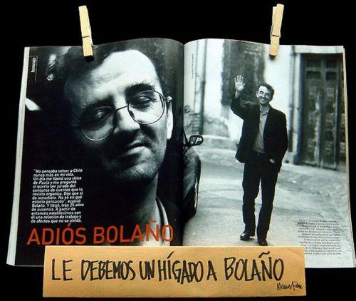 Roberto Bolaño dentro de las palabras que van saliendo de este poema, en el cenicero de un bar, en una camisa y unos pantalones tendidos de un cordel de un vecindario de Montevideo, en la ola que rompe, en la música que entra por nuestros pulmones y sale para entrar en los pulmones de los demás; es las luces de Los Angeles vistas desde un avión, es el caño de agua interminable, es una paloma que caga sobre una estatua, es la hoja seca que cae de los árboles rojos y que el viento arrastra con otras más y es el alba difusa entre los rascacielos, el smog del D.F. y las luces encendidas de un apartamento donde un hombre golpea a una mujer, la sangre y el agua que corre por los desagües, la eternidad de la luz en el polvo, la luz del sol que te busca por calles y calles y todas las calles del planeta y de repente te toca el hombro y tú te volteas un segundo y lo sientes.